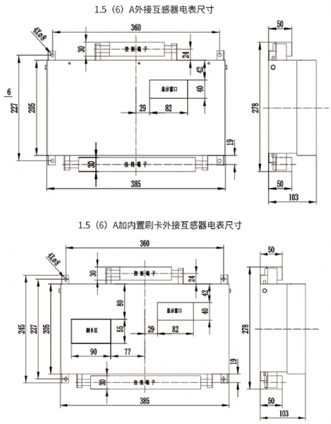 ◆ XY-85型和XY-80型工业用互感器大电流远控、远抄及刷卡多用户电能表尺寸(单位:mm)。